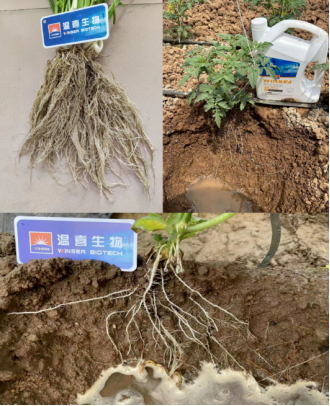 Sous conditions de haute température, le traitement par arrosage au sol avec le Root Shield fait que les fraisiers ont plus de racines, des racines plus longues et plus robustes. Le nombre total de racines augmente de 15,8 % par rapport aux produits concurrents, la longueur totale des racines de 30,0 % et le diamètre moyen des racines de 27,9 %.
