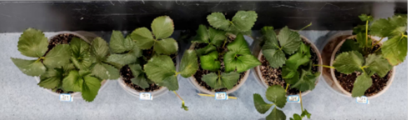 • Conditions du test : Tous les fraisiers ont été placés dans une chambre climatique artificielle pour une gestion unifiée (température 30℃/22℃ (jour/nuit), photopériode 12h/12h (lumière/obscurité), humidité relative 65 %).